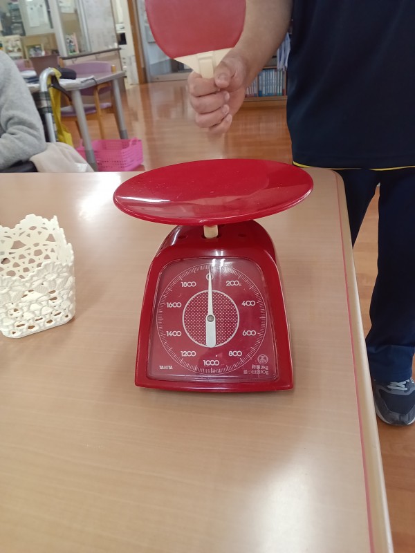 今日のレクは、重さ当てゲームです。