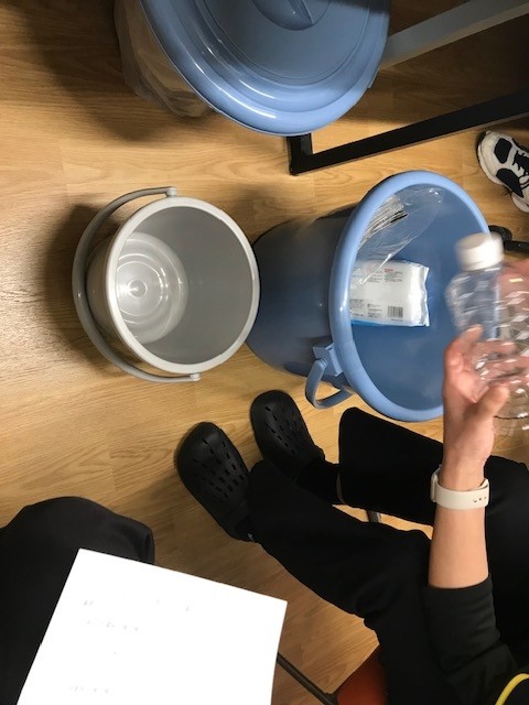 このペットボトルの中には〇mlの液を入れる。そのあとバケツに水を入れ希釈するなど手順の確認をします。目安のメモリを書いておくことで誰でもわかりやすく作ることができます