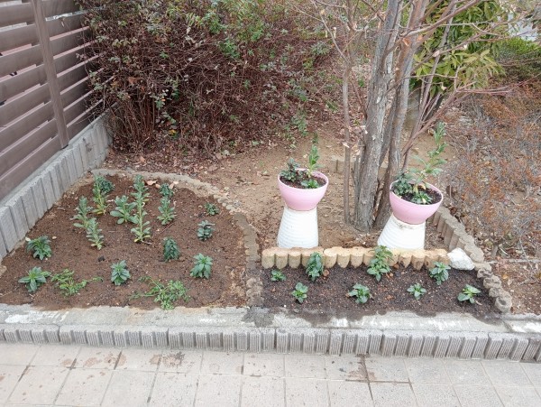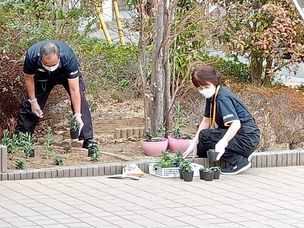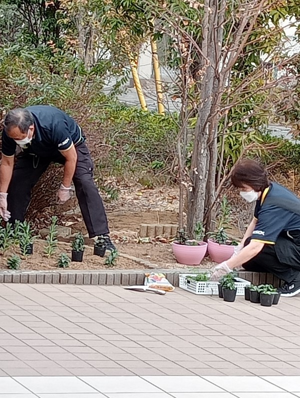 早速スタッフのAさんとKさんで、エントランス脇に植えてくれました????