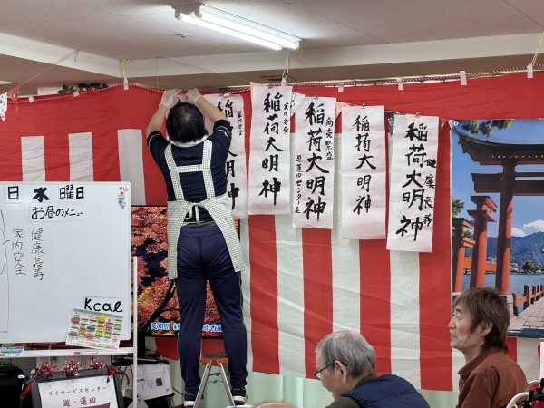 今回はいなり寿司制作組と、書道にて「稲荷大明神」執筆組と別れて進行しました。この執筆作品はこれから飾っていきます!