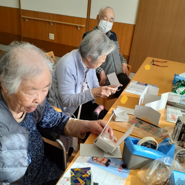 千代紙を手に取り、切って貼って…、