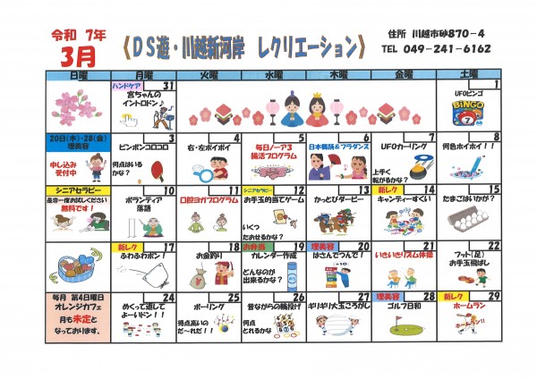 3月のレクリエーションカレンダー♡