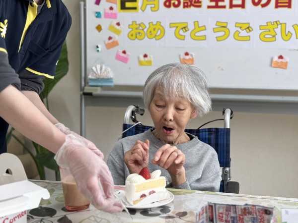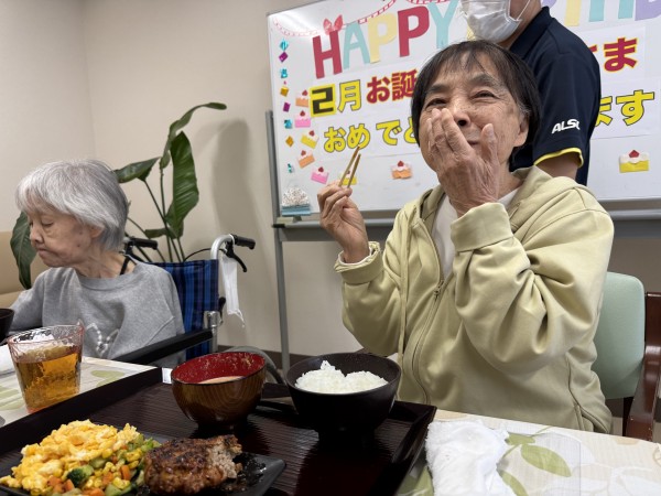 本日お誕生日の皆さまの昼食は、手作りハンバーグをご用意させていただきました♡