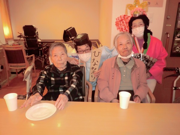 今回はお茶会のような形とさせていただき、職員仮装によるお雛様・お内裏様とお写真撮りながら歓談していただきました!