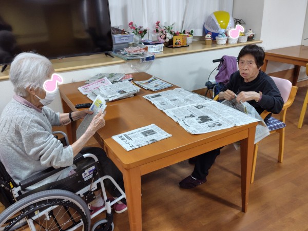 職員が、新聞紙を抱えてリビングに向かうと