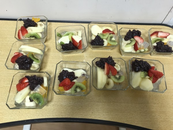 ひなまつりの日におやつレクをしました!クリームあんみつ風です♪