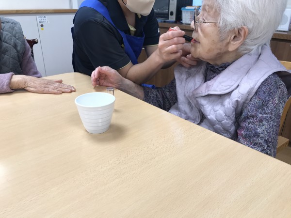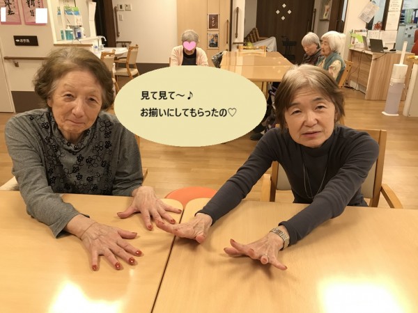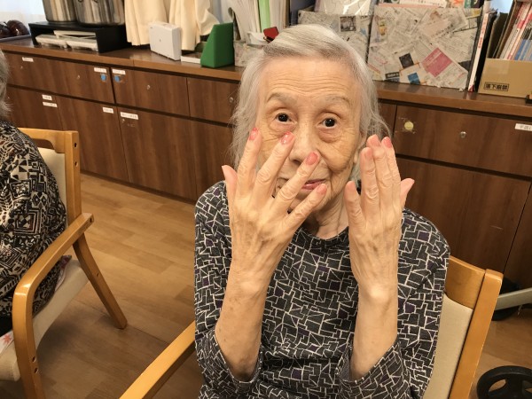 マニュキアを塗る・塗らない、色の選択もご自身で♬ マニュキア塗ったりと中々、写真が追い付かず途中、急遽カメラマンI様登場(笑)味のある写真になりました♬ マニュキアを塗っていると「女性はいくつになっても女ね~。やっぱりこういうの塗ると嬉しいね」とM様の名言も飛び出しました。
