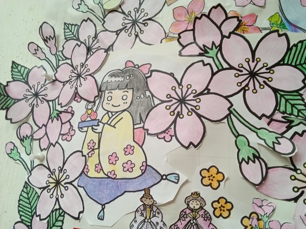 桜のお花や、ひな祭りの飾りでいっぱいですね!
