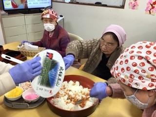 午前中は、恒例の「おひな様散らし寿司」作りです。