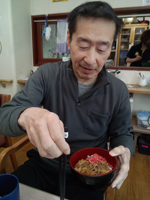 牛丼を何日も前から楽しみにされているご利用者様がいらっしゃいました。