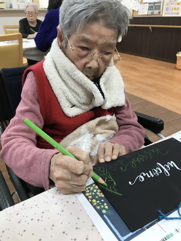 ミモザを描きながらウエルカームボードの作成です(^^♪