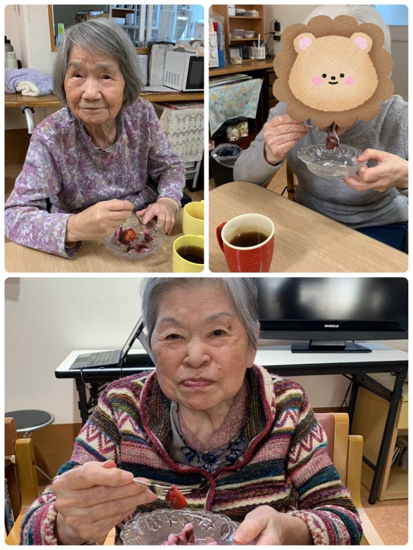 レクが終わった後は楽しいおやつタイム、皆さん、イチゴ大福を召し上がりました(^_-)-☆