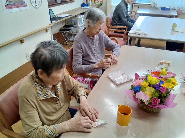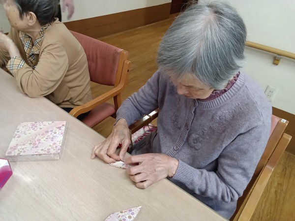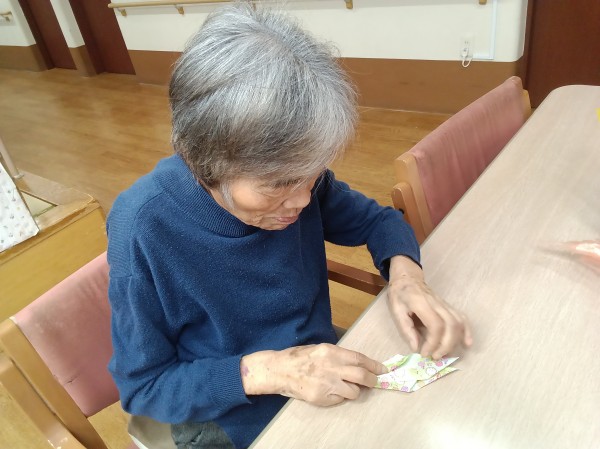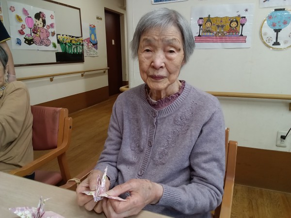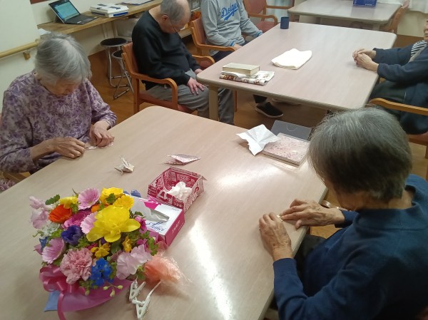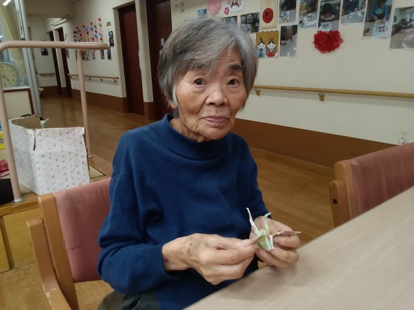 ご利用者様に、長寿の象徴とされる鶴を折っていただきました。