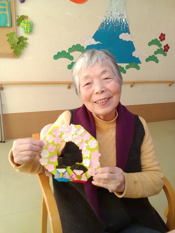 完成!会心の作、ですね!ステキなお雛様リースが出来上がりました~♫