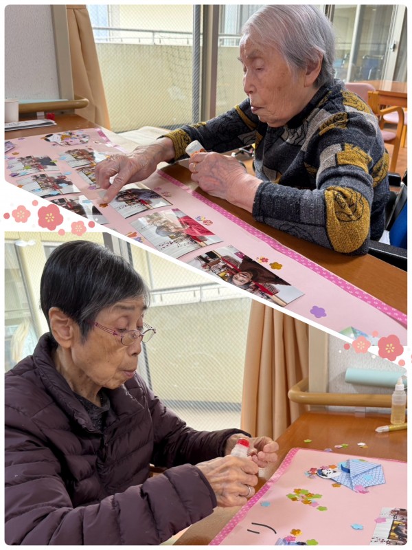 ご入居者様も写真のまわりの飾り付けを一緒にしてくださいます。