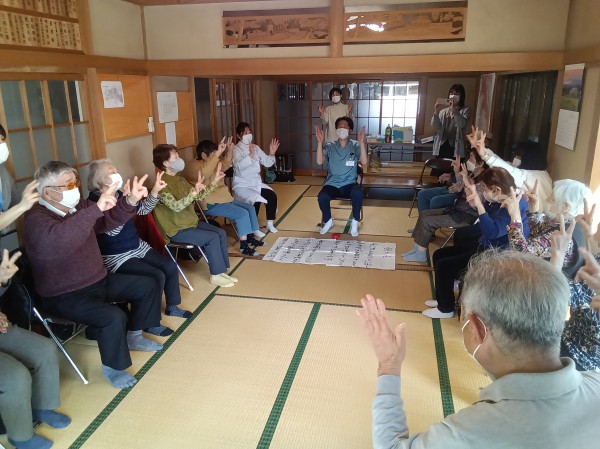 ストレッチのご指導と、「富士の山」の曲に合わせた体操のご指導がありました(^O^)/