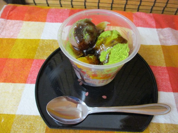 春をイメージして・・・桜あんに抹茶アイスをトッピング♬
