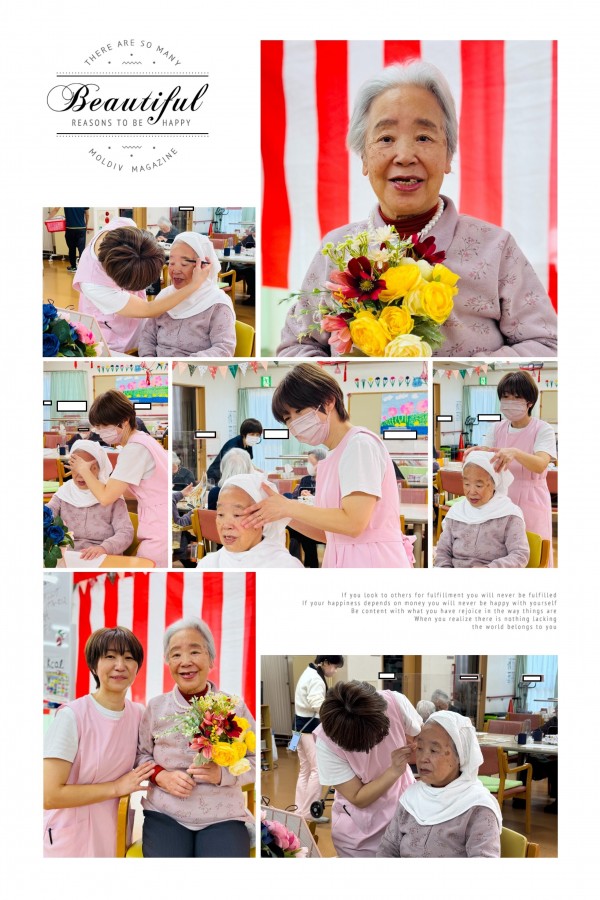 今回は3名のご利用者様が化粧セラピーに参加されました。若々しく明るい表情を見せられています♪