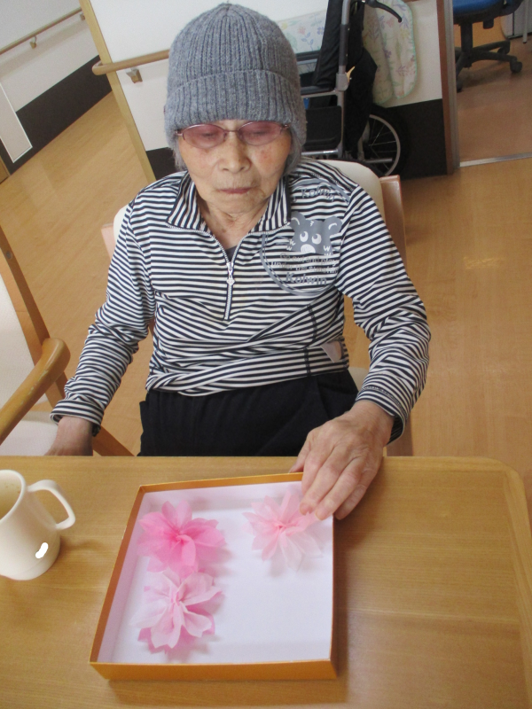 今回は、皆さまに4月のレクで使う桜作りを手伝っていただいたので、そのご様子になります????