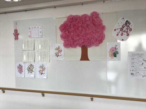 ご利用者様たちの協力のおかげでホワイトボードは春を迎える準備が着々ととのいつつあります。