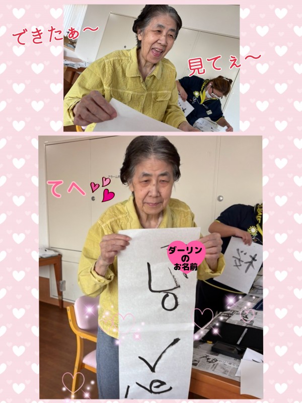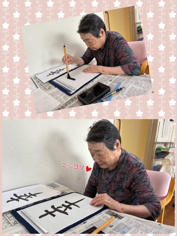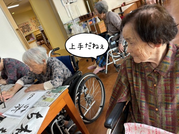 前出で書道のご様子をご紹介しましたが、今回は別の階での書道のご様子を。