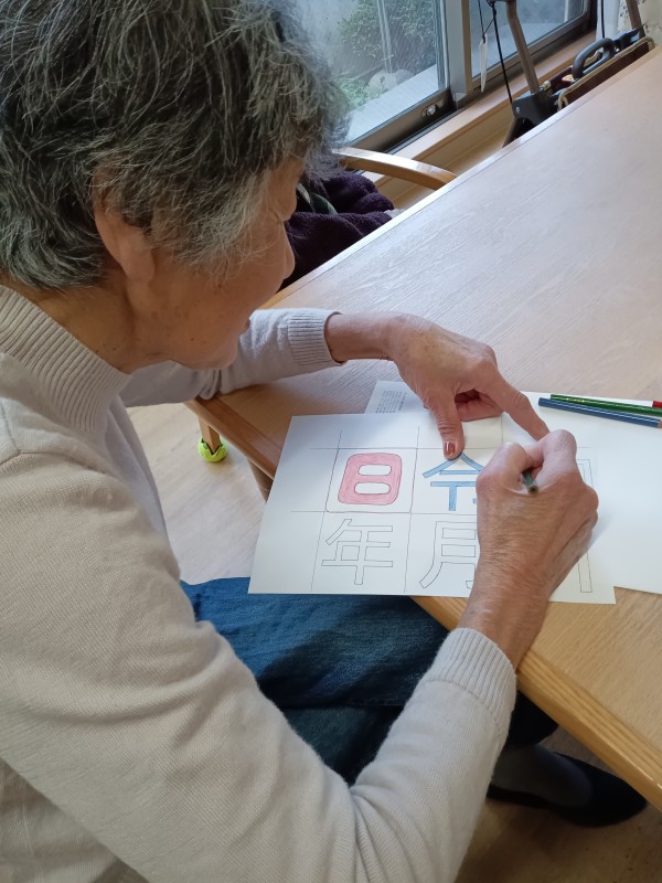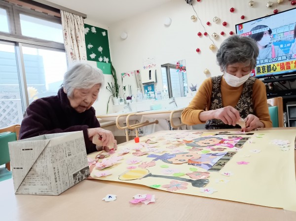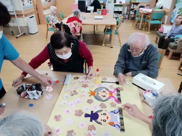 春の訪れを感じる3月、みんなの家では利用者の皆さんと一緒にカレンダー作りを行いました。