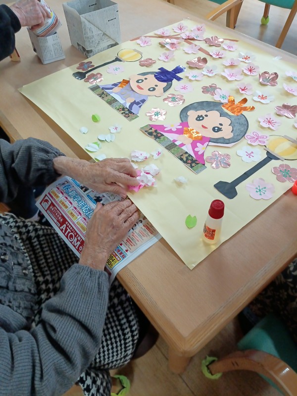 「昔、娘のために雛人形を飾ったのを思い出したよ」「桜が満開になるのが待ち遠しいね」といったお話をしながら、笑顔が溢れるひとときでした。