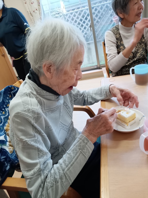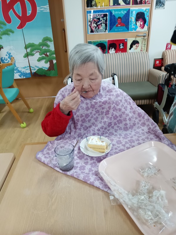 先日、利用者の皆さまと一緒に美味しいケーキと夕食を楽しみました。