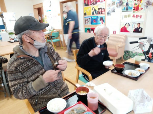 温かいお料理を前に、「今日のご飯は何かな?」と楽しみにされる声も。会話を楽しみながら、おかずを一品ずつ味わう姿がとても印象的でした。