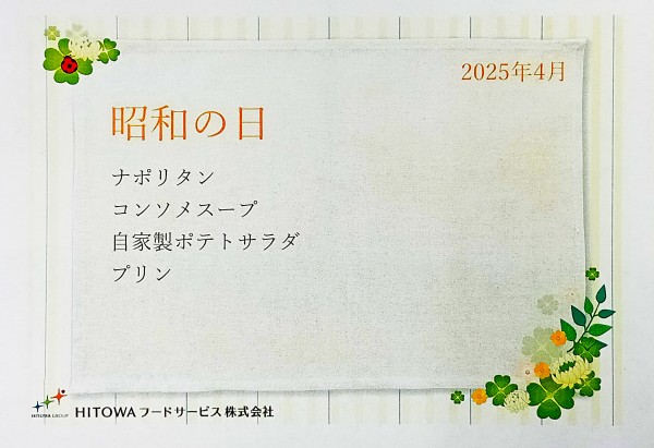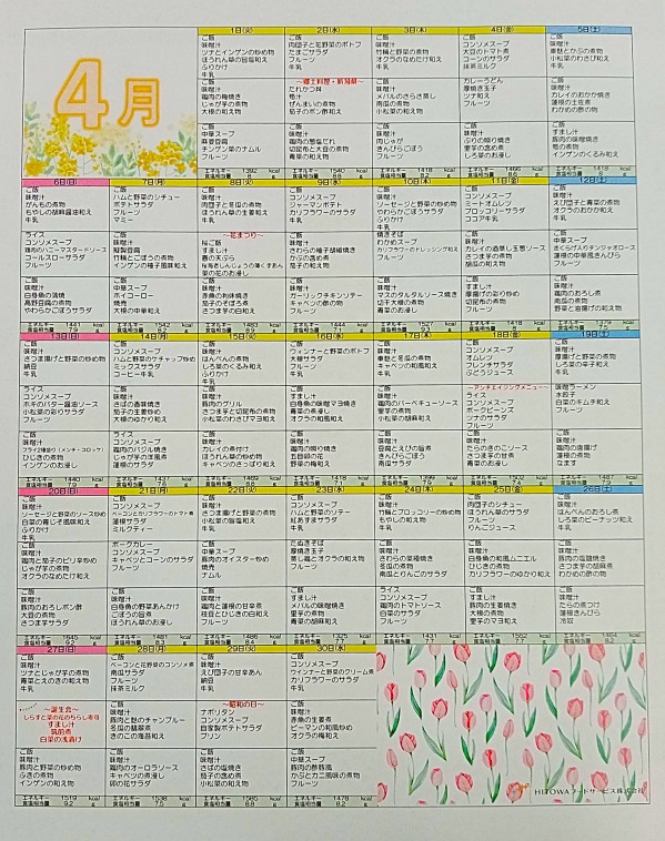 4月の献立表が出来上がりました(≧▽≦)