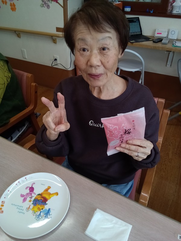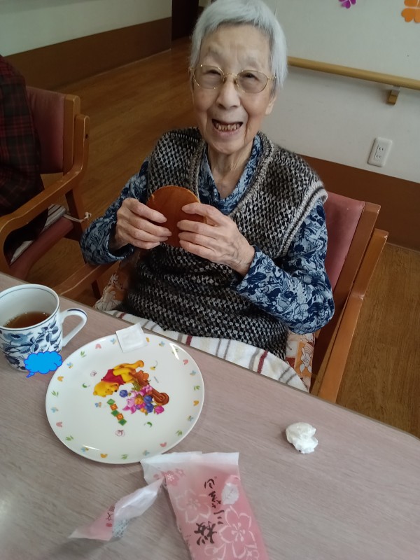 2階ご利用者様の本日のおやつは、ご家族様からいただいた「どら焼き」でした。