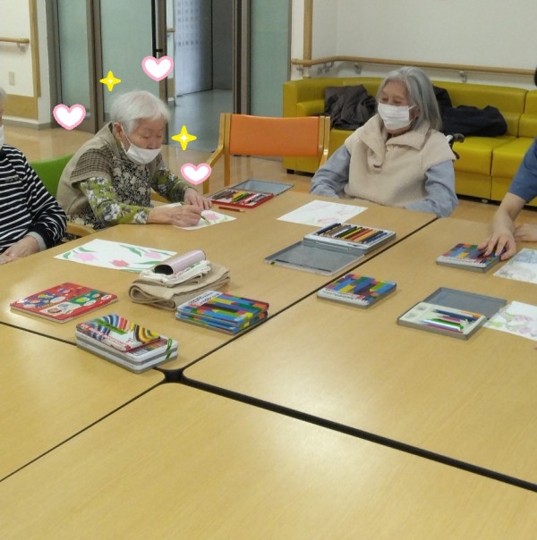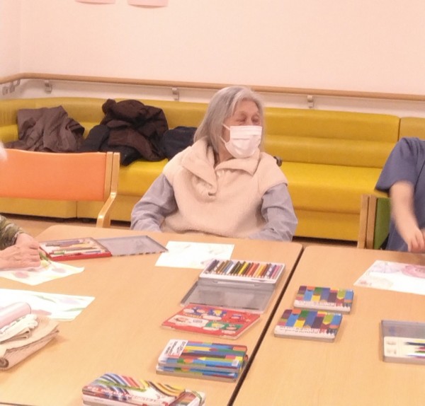 今月のカフェ内容は体操と塗り絵とのことで、興味のありそうな入居者様2名お誘いし行ってまいりましたー!