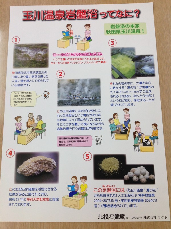 こちらですが、何と秋田県にある玉川温泉の元を使っての足温浴となります!これはすごい!!