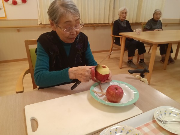 入居者様に剥くのをお願いすると、するする~とあっという間に剥いて下さいました!