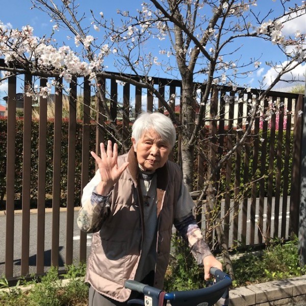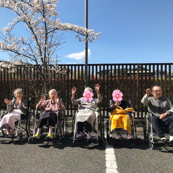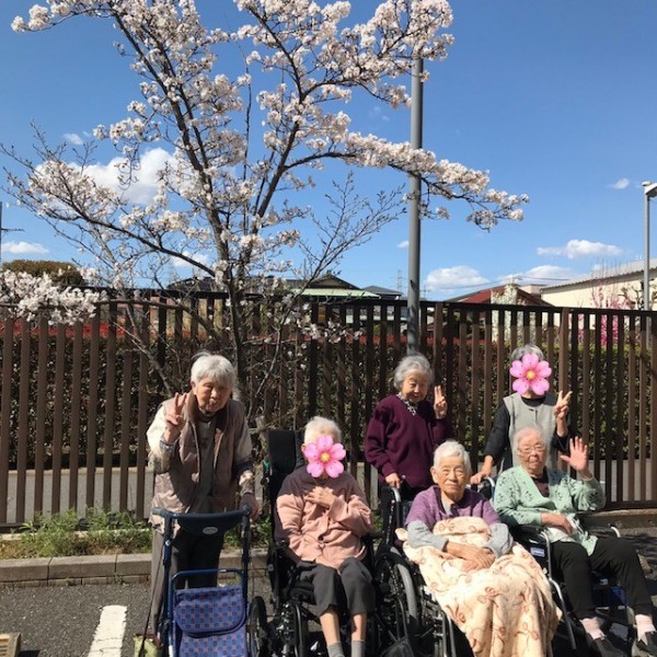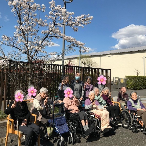 先日、施設内に咲いている桜を見に外へ行きました!