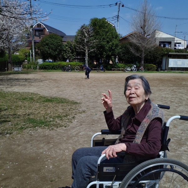 施設の目の前にある公園へ桜を見に行き、