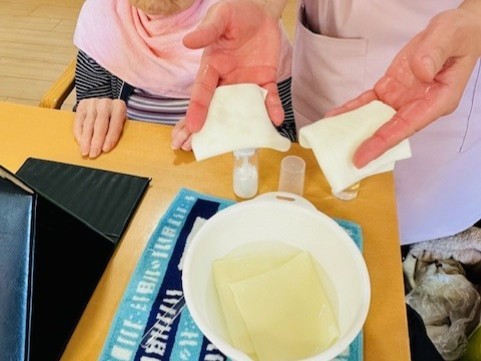 シニアセラピーの施術を受けて幸せそうにしていた利用者様を発見!