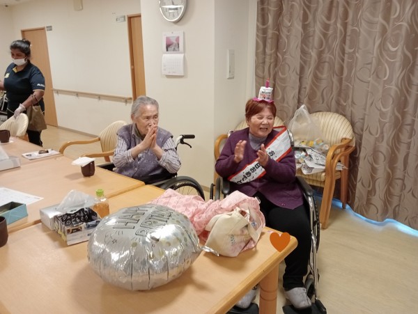 スタッフや他の入居者様たちに「おめでとう!」と言われ