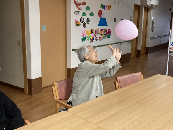 風船バレーの魅力は、①風船の動きがゆっくりのため皆さんが参加しやすいこと ②しっかりたたくために風船の動きを追うので集中力・反射神経が増すこと