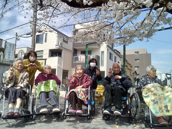 春の日差しと桜の香りに誘われて3階のみなさんとお花見。