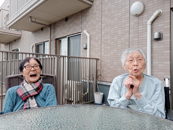 ですが、アミカの郷川口の皆様は元気にお過ごしです(´ω`*) 風が少しありましたが、テラスでおやつを召し上がっていただきました♡