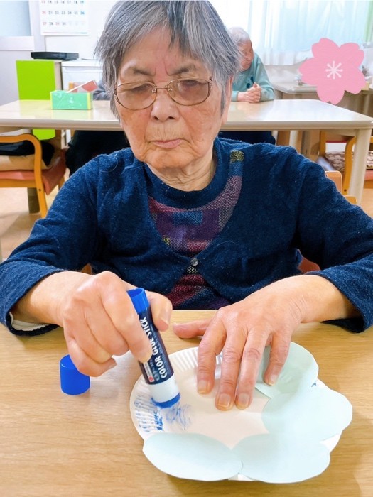 A様とM様が職員と一緒にお花の得点皿を作成してくださいました♪