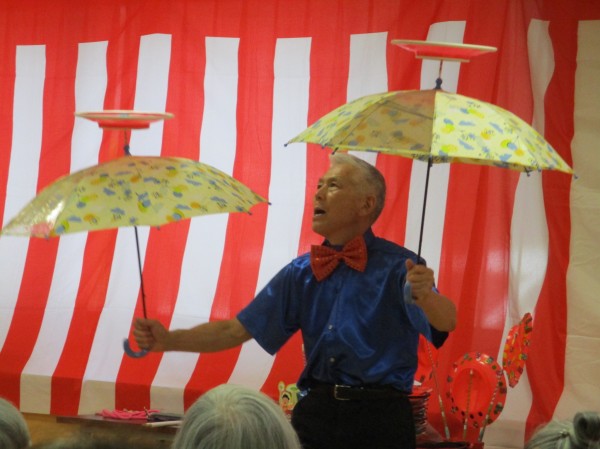 圧巻の皿回しや絵柄が変わる扇子など不思議な光景に利用者様も釘付け!