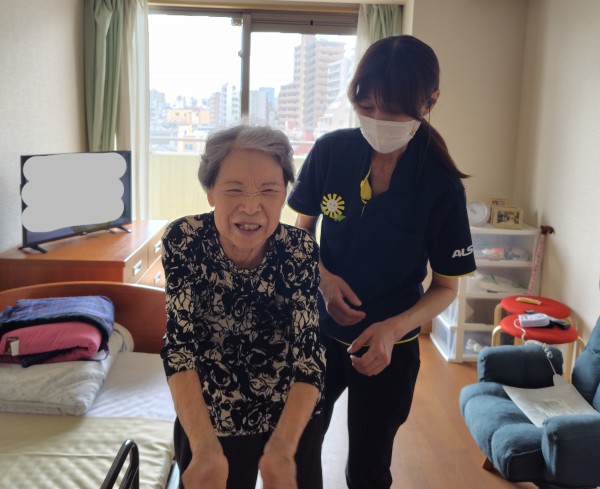会うたびに『待ってたよ〜!』と、いつもの紙箱をプレゼントしてくださるご入居者様。これは◯◯さんの分、こっちは△△さんの分、とご準備してくださってます。