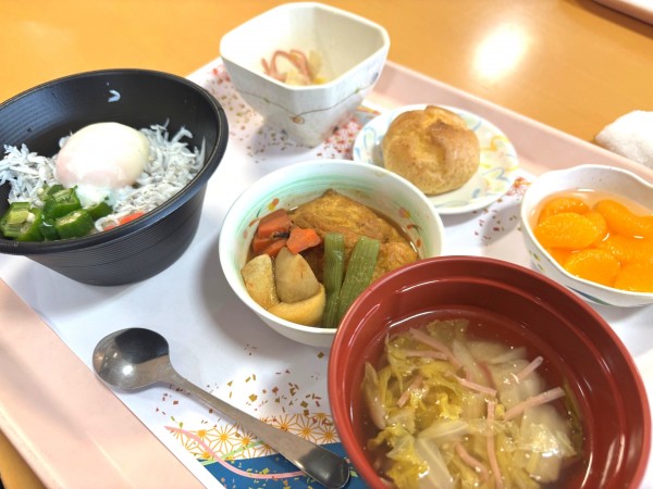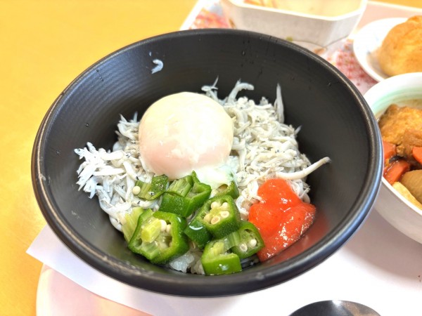 先日有償サービスの釜揚げしらす丼を申し込まれた方に昼食で提供されました
