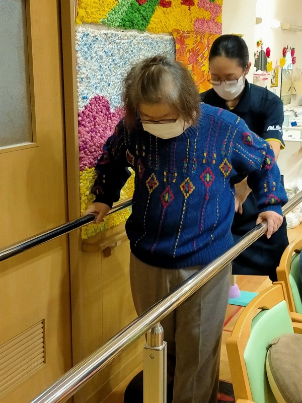 「これからやっていけばなんとかなるかな…」と少し不安そうに話していた方が、数週間後には「もう1往復できるかも!」と自信たっぷり!前傾姿勢だった姿勢も体力がついてくるにつれて改善し、歩ける距離が増えてきました。