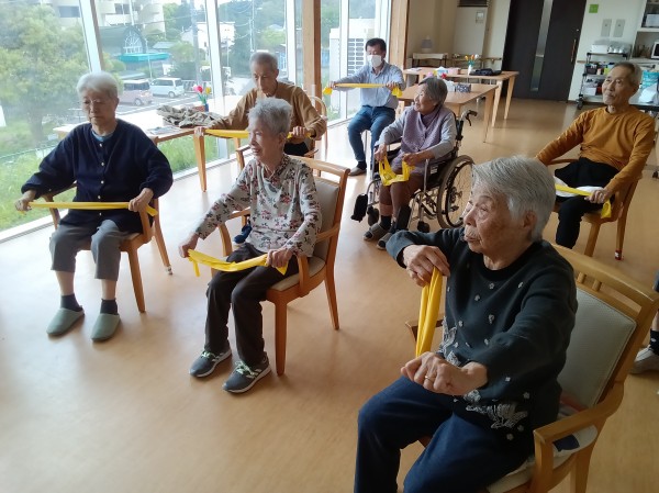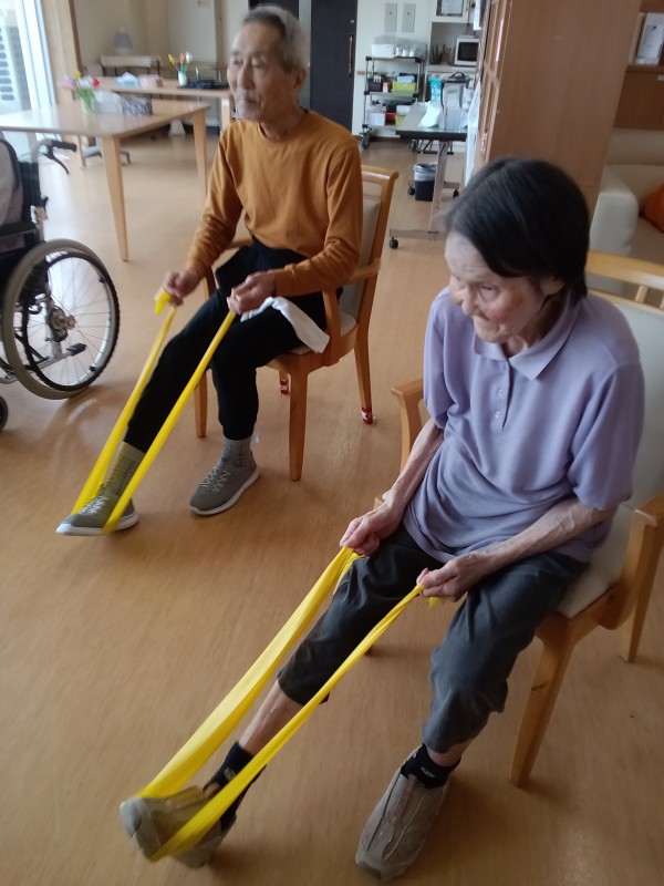 ゴムのチューブを使って、軽く負荷を与えて筋力もアップ!!