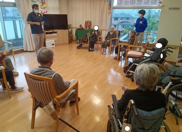 本日、普段はマッサージやリハビリで来ていただいているまごころベルサービスさんの体操がありました。