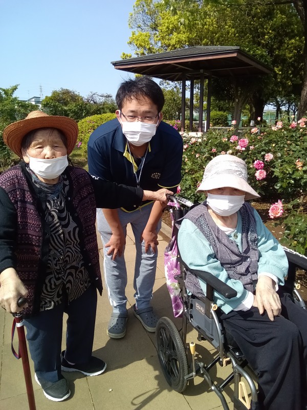 向かう道中も利用者様同士にこやかにお話もされておりましたし、現地でも見慣れない色の薔薇を見ながらお話も弾んでいました。