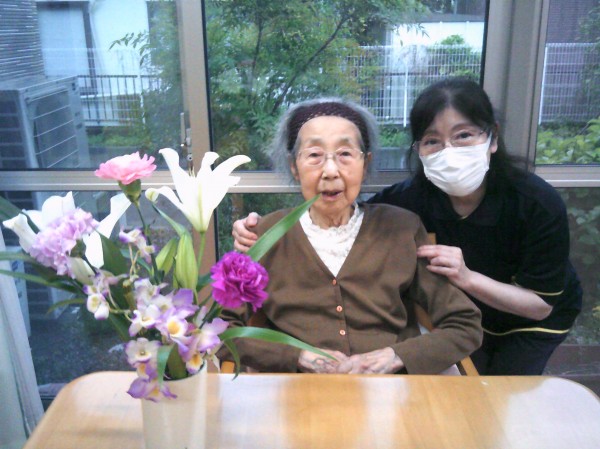 今日はご家族様が面会に来られたご様子とお花の差し入れがありました。そのご様子をお知らせいたします。